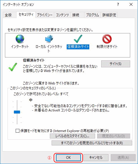 選択後に③[OK]をクリックしてセキュリティ設定画面を閉じます。