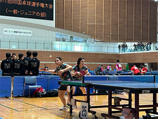 高知県高知市で行われました第72回四国卓球選手権大会に参加し、団体戦・混合ダブルス・ダブルス・シングルスの計4種目に出場しました。